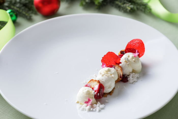 イタリアンダイニング「ジリオン」は「イタリア」が舞台。デザートにはイタリアのクリスマスには欠かせない“パネットーネとマスカルポーネのババ エスプーマ仕立て”をご用意いたしました。