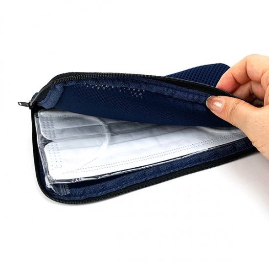 こちらが洗えるマスクポーチです。そのまま洗濯機に入れて洗うことが可能で、マスクの型崩れを防いでくれます♪外側にはポケットが付いていて予備用のマスクも収納することが出来ますよ!