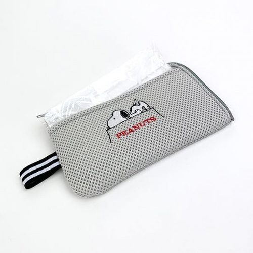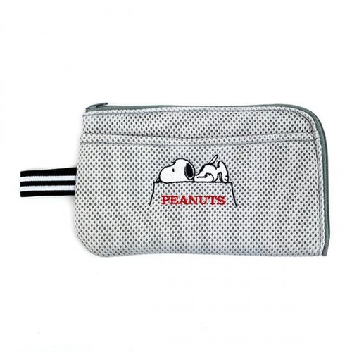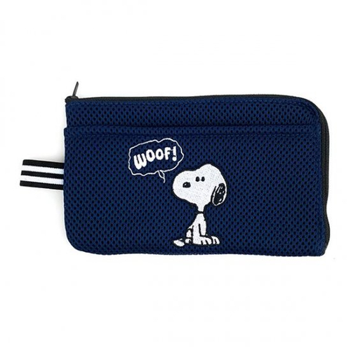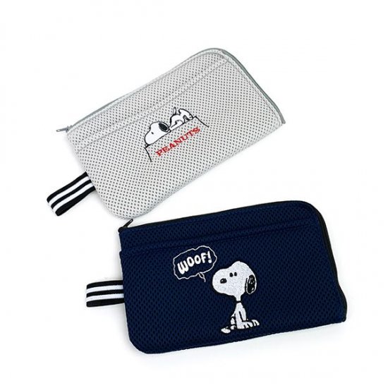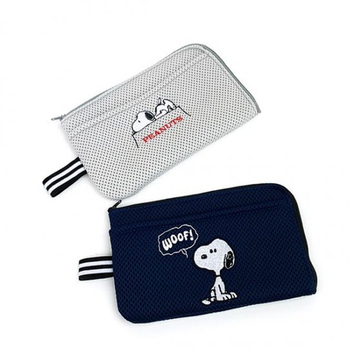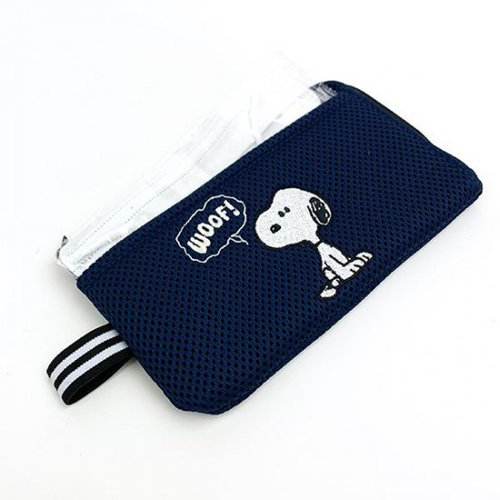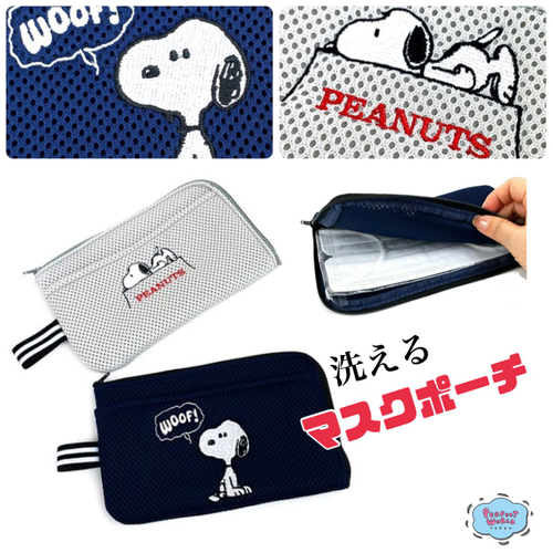 そのまま洗濯機に入れて洗えるスヌーピーのマスクポーチ♪外側ポケットには予備用マスクも収納可能◎