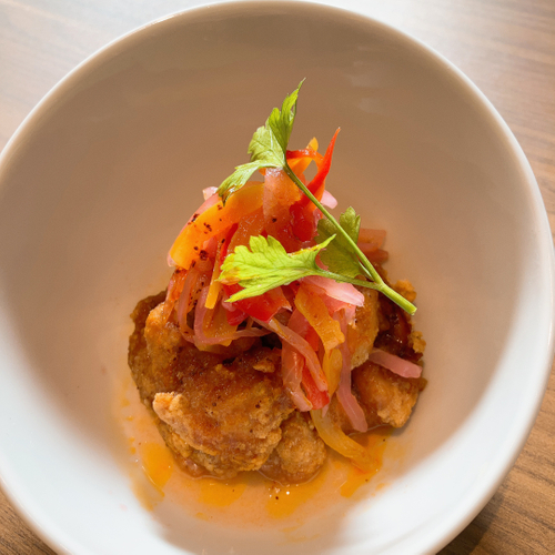 低カロリー・高たんぱくで柔らかい信州福味鶏をパリッとジューシーなフライドチキンにし、特製スパイスをまぶした、やみつきな一品。