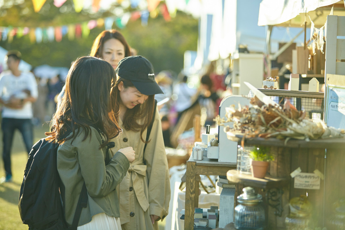 会場ではアクセサリーや革小物などの手作り雑貨を中心にアンティーク、グリーンなどこだわりのショップが出展します。また、健康的な食材から作られたフードやスイーツなど合わせて、8日間で約600店舗(1日平均約380店舗)が集結。