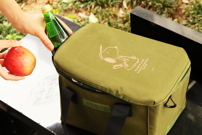 テニス場に向かうスヌーピーがプリントされたクーラーバッグは、デイリーユースにもおすすめなアウトドアグッズ。BBQやキャンプなどのレジャーシーンにはもちろん、エコバッグとして毎日のお買い物にも活躍してくれます。500mlの缶が12本とたっぷり入って、使わないときは折りたたんで小さく収納できる優れもの。