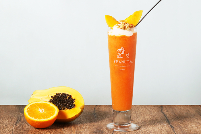 オレンジ、ブラッドオレンジ、ニンジン、バナナ、パパイヤ、パッションソースが入ったフローズンスムージーに、氷の上を滑るスヌーピーやチャーリー・ブラウンの独特なポーズに見立ててパパイヤをトッピング。楽しく滑った後に霜焼けになってGOOD GRIEF!(やれやれ!)とぼやいてしまうスヌーピー!トロピカルな味わいのひんやりドリンクをお楽しみください。