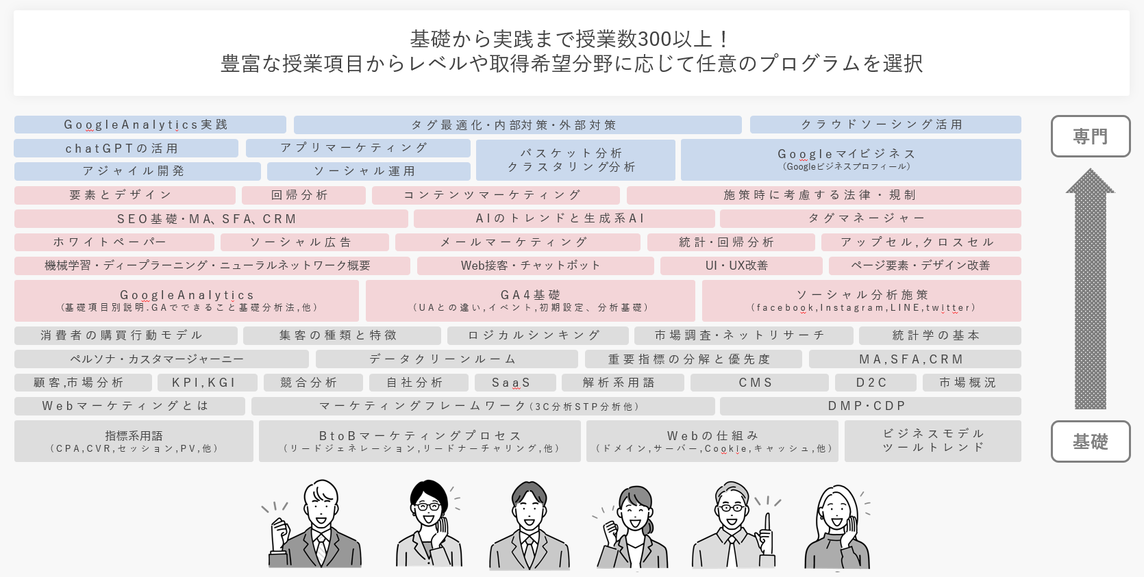 DXやデジタルマーケティングの実践に関わる専門スタッフがカリキュラム化しています。