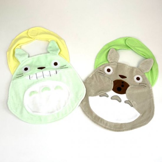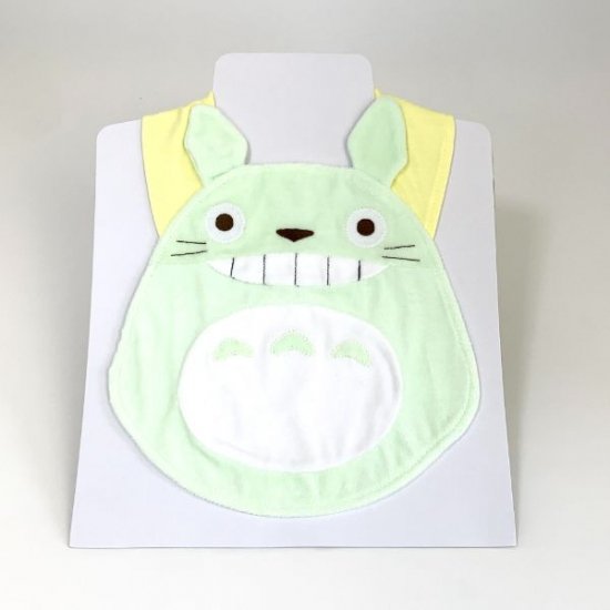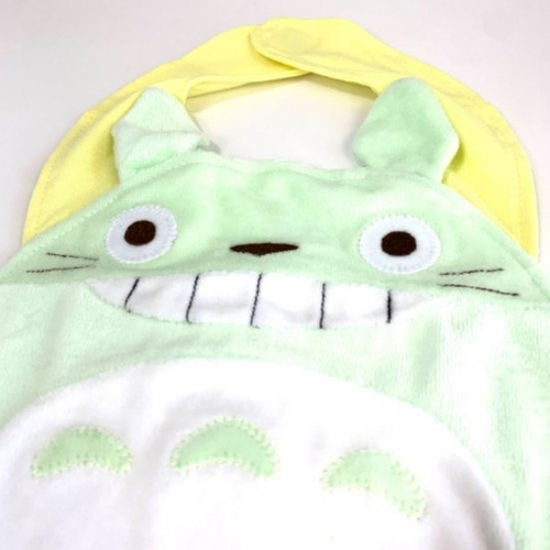 トトロのベビースタイ(よだれかけ)です。淡いグリーンカラーで目に優しく首元はイエローカラーで元気に仕上げられています。首元部分はマジックテープになっているので、付け外しがスムーズ♪フワフワの手触りが特徴で、赤ちゃんもママも笑顔になっちゃう♡そんなベビースタイとなっています。