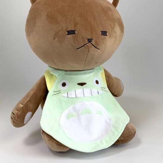 赤ちゃんに付けるとこのようなイメージ♪手作りにも見えるような縫い方であたたかい印象がありますね。「トトロってスタイにするとちょうどいい形なんだな」と思わせるダイカットデザインです。色や質感も優しいから出産のお祝いや、お誕生日のプレゼントにも最適◎