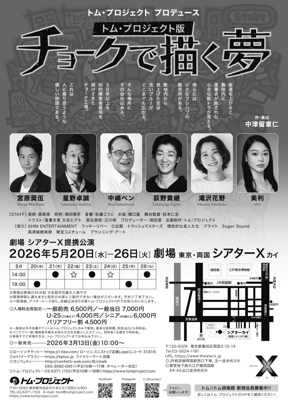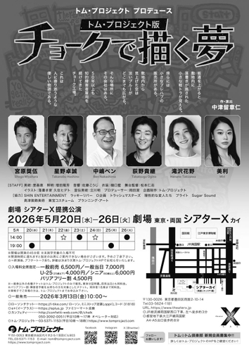 トム・プロジェクト版『チョークで描く夢』が2026年5月20日 (水) 〜 2026年5月26日 (火)に東京・両国シアターΧ(東京都 墨田区 両国 2-10-14)にて上演されます。