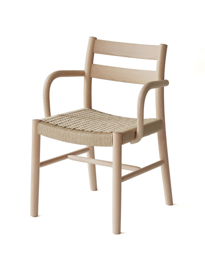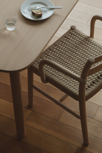 シンプルながらも愛らしいデザインが特徴のチェア。ブナ材ならではの曲げやすさを生かしたアームは、思わず触れたくなるような優しいフォルムです。背もたれのわずかな丸みが、座る際や移動させる際の手に心地よい温もりと安らぎをもたらします。さらに、シートは張り込み、板座、ペーパーコードの3種類をご用意。多様な生活環境にフィットする選択肢が魅力です。