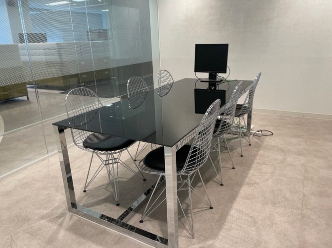 執務スペースとを隔てる間仕切りはガラス仕様の間仕切りで、スタイリッシュな印象です。