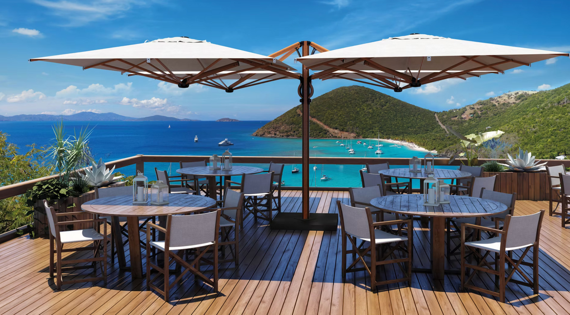 1974年、イタリアヴェネツィアのほど近くにて創業。デザイン性と機能性を追求したパラソルは、大空間を美しく演出。厳格な品質チェックを伴った製品は、世界中で愛され続けている信頼の源となっています。洗練されたデザインと徹底した品質管理でハイクラスホテルや高級レストランのみならず、街のカフェや個人邸など幅広く利用いただいています。