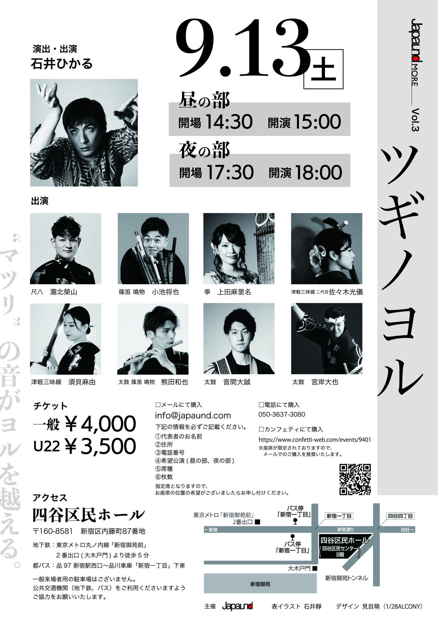 Japaund MORE 第三回公演『ツギノヨル』が2025年9月13日 (土)に四谷区民ホール(東京都 新宿区 内藤町 87)にて開催されます。