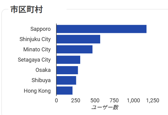 「北海道の民泊投資の専門家」という肩書を背負うJANKEN。その肩書への期待が、ユーザーの地域分布からも明らかになります。当社が拠点を置く札幌市を中心に、東京23区や大阪、さらには、香港からも一定のアクセスを獲得しており、国内の中でも資金力の大きさが期待される大都市圏の投資家や、日本での不動産投資に興味を持つ海外投資家へ存在をアピールできていることが伺えます。
