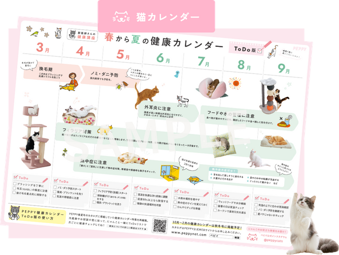 ペット用品通信販売事業を30年以上続けている株式会社PEPPY(大阪府大阪市、代表取締役社長:平尾 泰久)は、「わんにゃん健康カレンダー」を先着5,000名様へプレゼントするキャンペーンを2026年4月16日(木)より開始します。数量限定となりますので、なくなり次第終了です。