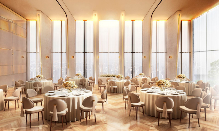 婚礼など多目的に使用できるイベントスペースが誕生します。天井から大樹のように全方位に広がるアーチと、エリア最高層から大阪の街を見渡す絶景が特徴の美的空間。ミシュランシェフ監修の料理と様々なジャンルのアーティスト、そしてそこに集うすべての人で織りなされる心の底から感動する体験をプロデュースします。