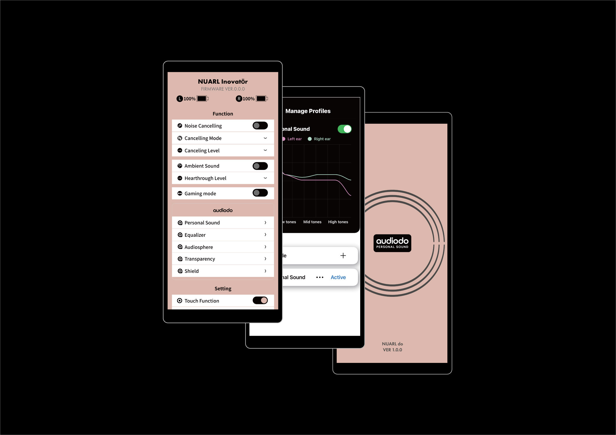 iOS/Android端末で使用可能な専用アプリ「NUARL do」を使用すれば、Audiodoの各機能設定、Inovatorの機能拡張やファームウェアのアップデートを行うことが可能。マルチポイント接続時には音楽を聴いている機器以外の接続端末側でアプリを操作することもできるのでDAPとの併用時にも便利です。*1