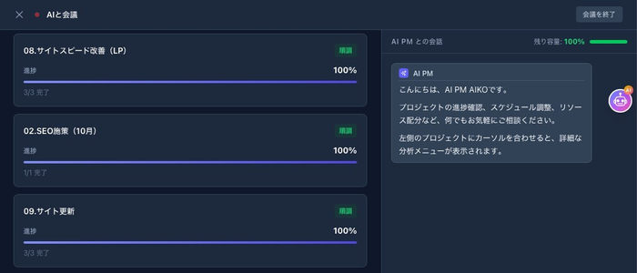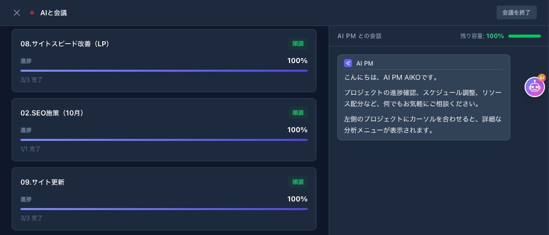 ### **2. AIと会議(AI PM機能)**