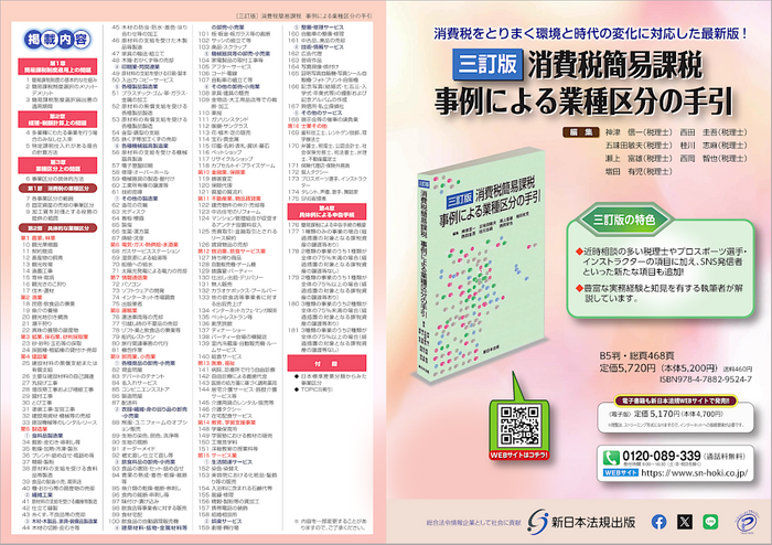 新日本法規出版株式会社(所在地:愛知県名古屋市中区、代表取締役社長:河合誠一郎)は、新刊『[三訂版]消費税簡易課税 事例による業種区分の手引』を2025年10月8日(水)に発売いたしました!