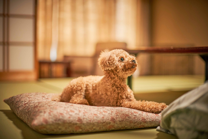 全室がわんちゃんと宿泊可能な客室となっており、お好みに合わせて和室・洋室をお選びいただけます。リニューアルに伴い、わんちゃんの足腰に負担がかからないよう客室の畳やカーペットなどを貼り替え、衛生対策のための「空間除菌脱臭機 ジアイーノ」も設置。また、あると便利なわんちゃん用のアメニティもご用意いたします。