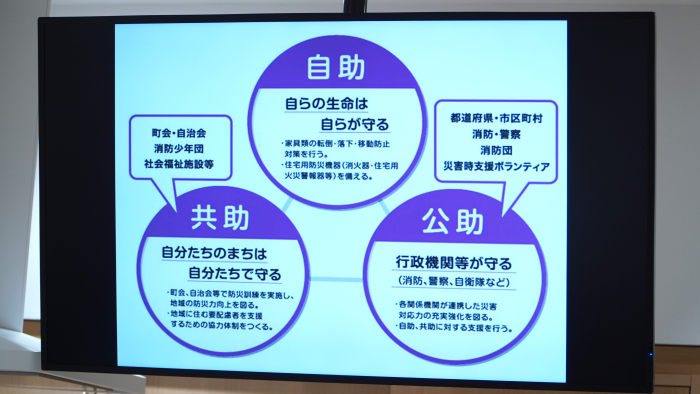 防災セミナーでは大阪ガスネットワーク株式会社北東部事業部地域コミュニティー室の松本様より「大阪ガスが考える防災セミナー」を、また守口市危機管理室様から「ハザードマップの見方等」について講演をしていただきました。