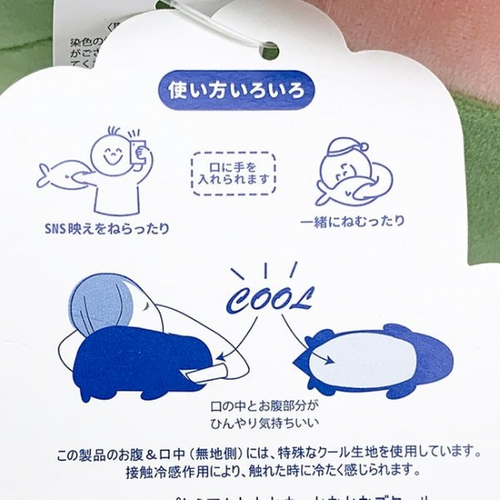 じんべえさんのぬいぐるみも登場♪こちらもひんやりクールなアイテムなので、抱き枕やクッションとして使えばひんやり快適です。