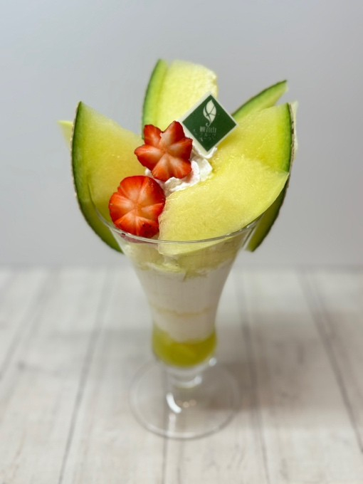 クラウンメロンと和歌山県産まりひめ苺のパフェ