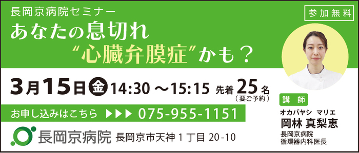 長岡京病院、3月15日(金)にセミナー第5弾を開催! 循環器内科セミナー「あなたの息切れ“心臓弁膜症”かも?」