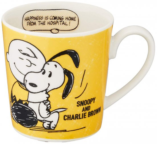 2つ目は、イエローがポップな印象を与えるマグカップです。チャーリーブラウンとスヌーピーの中の良さが垣間見えるマグカップですよね♪サイズは、約直径9×高さ9.5cm大きめのマグカップのため、たっぷり量が入りますよ。