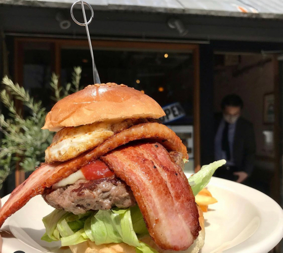 Route66のハンバーガーは、こだわり気質の間借り店主日比野さんが、一人でブロック肉から綺麗にトリミングして大ぶりにハンドチョップした他にないステーキ食感の肉肉しいパティが自慢のアメリカンバーガーです。通常のハンバーガー店ではフライドポテトがつけあわせてとして付きますがここではやはりブロック肉から落としたスジ肉を使用しており、肉好きにはたまらないバーガー店です。