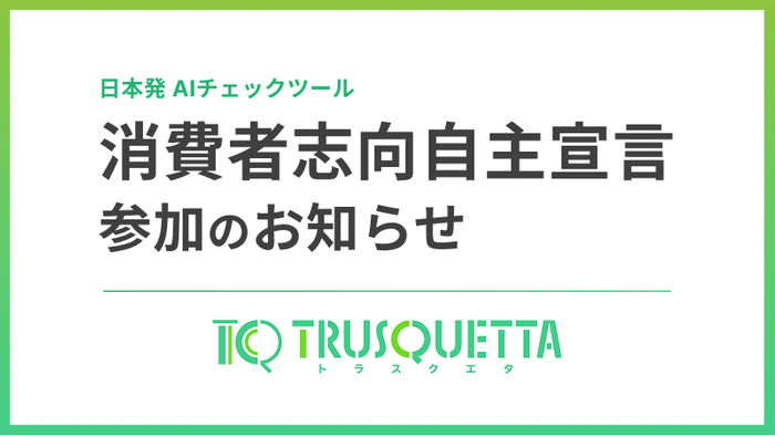 株式会社トラスクエタ(代表取締役:高橋 聡)は、消費者庁が推進する「消費者志向経営」の趣旨に賛同し、消費者志向自主宣言を行いました。