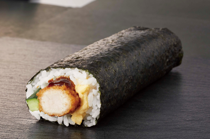 ヒレカツ、玉子、きゅうりが入ったお肉好きの方におすすめの太巻。
