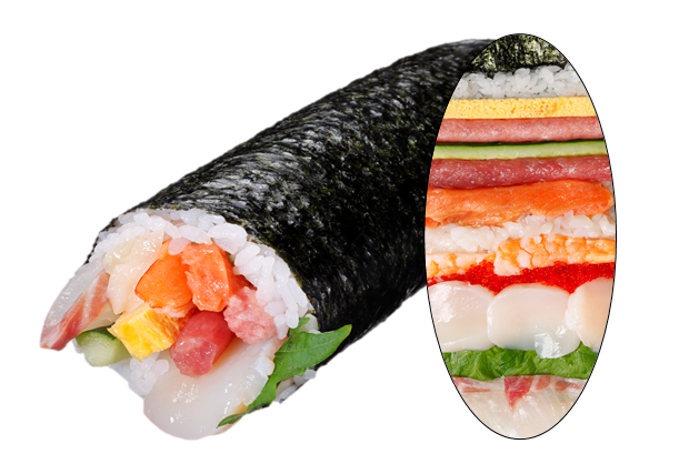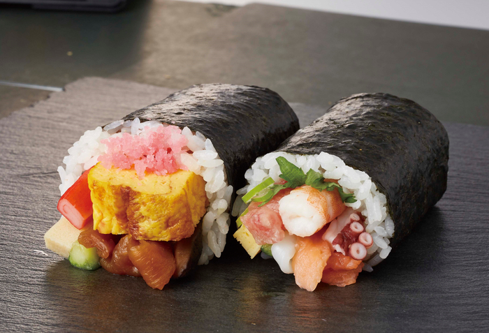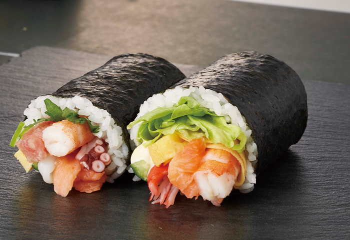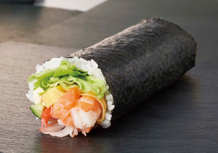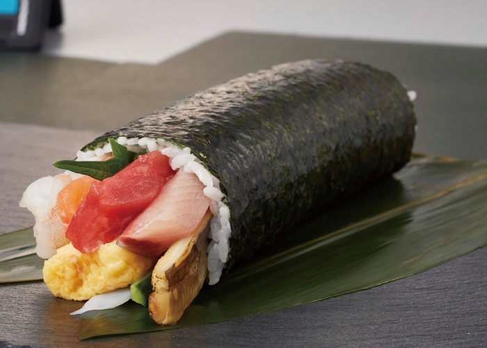 機能性表示食品であるライフオリジナルの“伊勢黒潮まだい”や北海道産帆立などをふんだんに使用した贅沢な海鮮太巻。