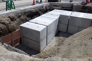 地中に埋められている基礎コンクリートブロック(約2.4t/個) 写真提供:株式会社内藤ハウス