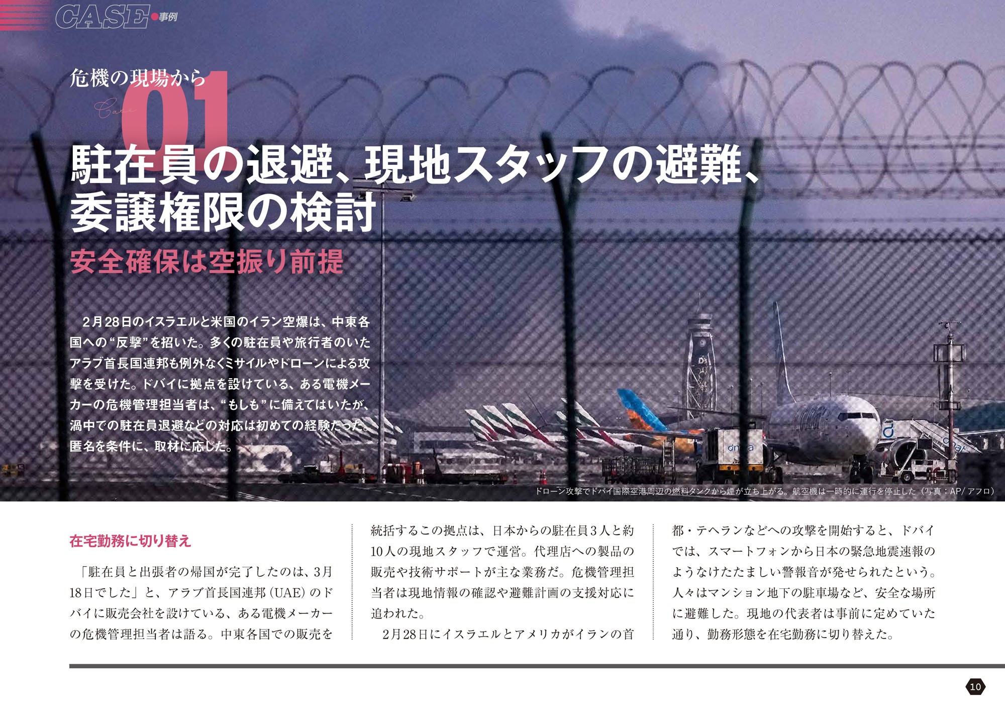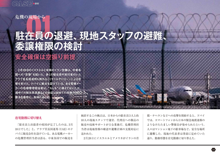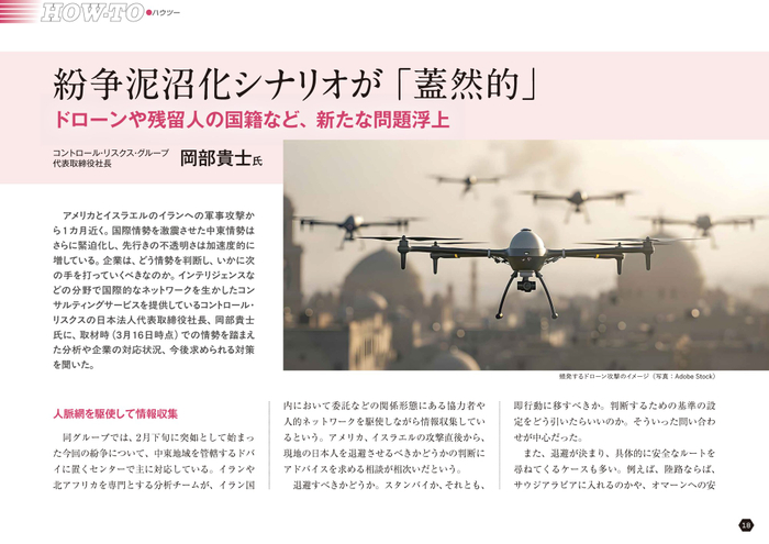 2月28日、米国とイスラエルによる空爆を受け、イランの報復の矛先は中東全域へと波及。現地駐在員を抱える日本企業は難しい決断を迫られた。空港の閉鎖、航空便の激減、国境通過の遅延などで移動のハードルは極端に上昇。ミサイルの着弾や破片の落下の予測もできない。