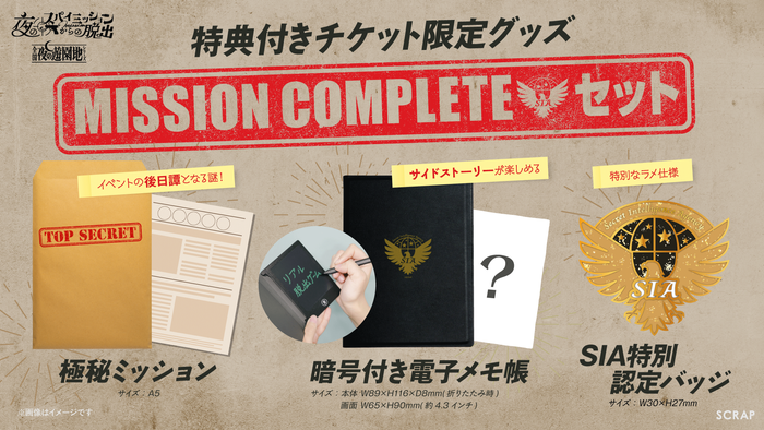 特典付きチケットには限定グッズ「MISSION COMPLETE セット」が付属します。