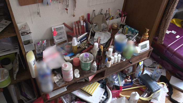 この日訪れたのは、グラビアアイドルの川島愛里沙さんのお宅。一人暮らしのワンルームは玄関から足の踏み場もない状態で、奥に入るのも一苦労。衣類が溢れて扉が閉まらないクローゼット、化粧品や飲み残しのペットボトルなどでいっぱいの机の上・・・。実は川島さんは以前、自身で一度この部屋を掃除したのですが、わずか4か月で元に戻ってしまったといいます。