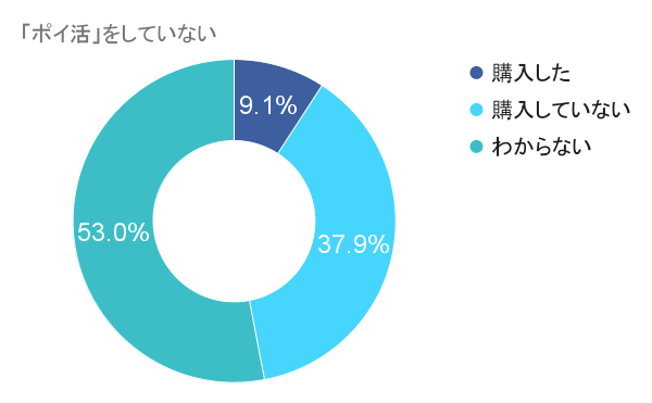 「キャンペーンをきっかけに商品を購入したことがあるか」と質問したところ、全体の約3割が「ある」と回答。そのうち、「ポイ活」をしていない人の中で「ある」と答えたのは9.1%に対し、「ポイ活」をしている人の中で「ある」と答えたのは36.9%と大きく上回った。その結果から「ポイ活」をきっかけに商品購入に繋がることが分かった。