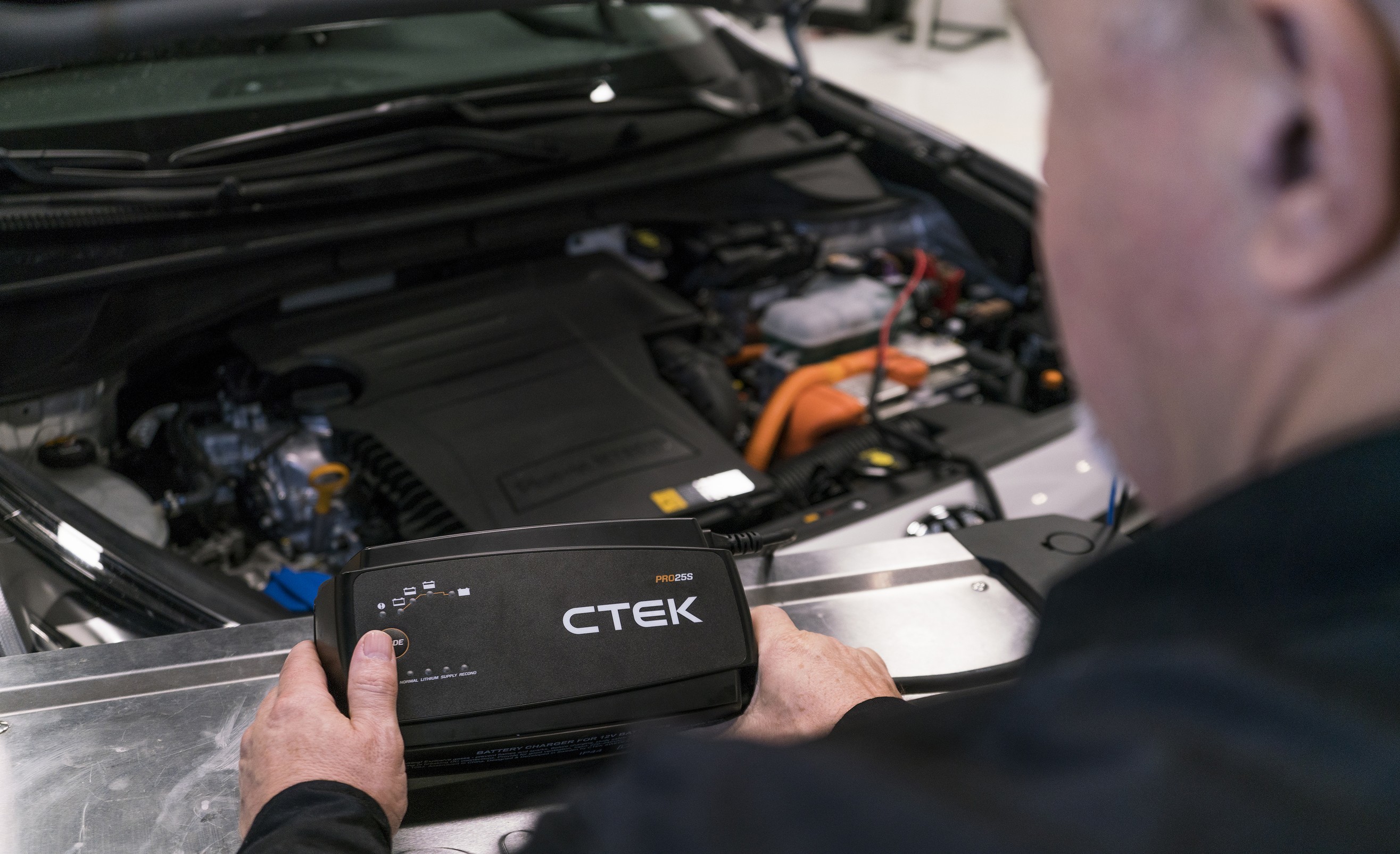 1. CTEK充電器はバッテリーを全自動で安全かつ確実に充電し、在庫車・展示車のバッテリー交換作業の削減が可能。
