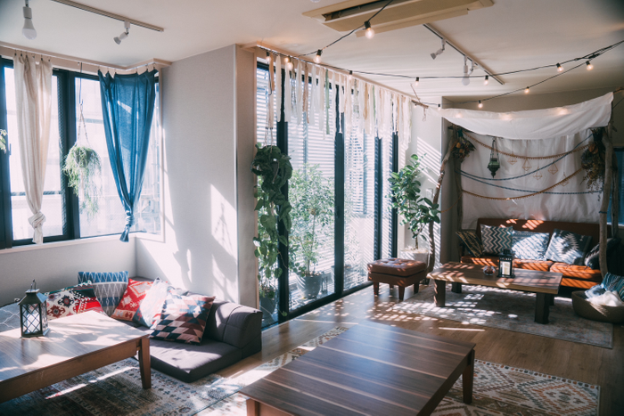 CROSS OSAKIは屋内グランピングをテーマにしたリラックス×ナチュラルなレンタルスペースです。