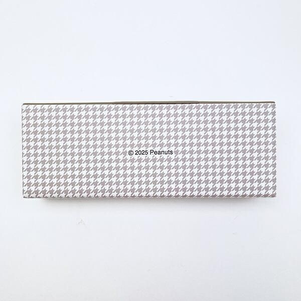 こちらは、ファッションショーのデザインメガネケースです。スヌーピーのメガネケースは割とシックで大人かわいいデザインが多めです。このデザインは千鳥柄がおしゃれで大人のかたからも評判がよさそうなデザインです。