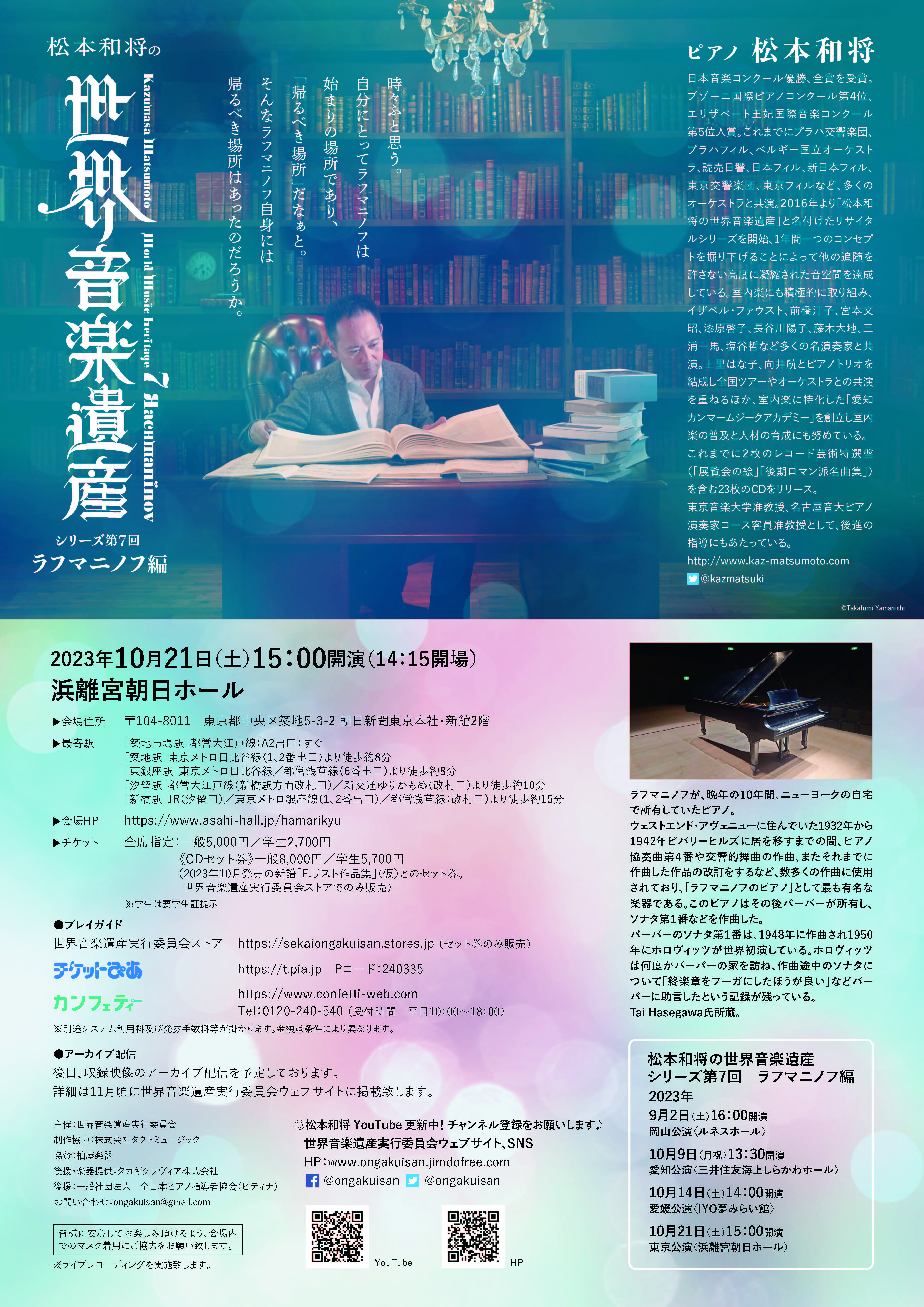 『松本和将の世界音楽遺産 シリーズ第7回 ラフマニノフ編 -帰るべき場所-』