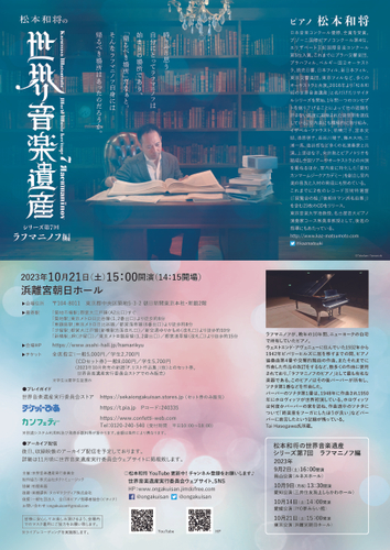 世界音楽遺産実行委員会主催、『松本和将の世界音楽遺産 シリーズ第7回 ラフマニノフ編 -帰るべき場所-』が下記の通り上演されます。