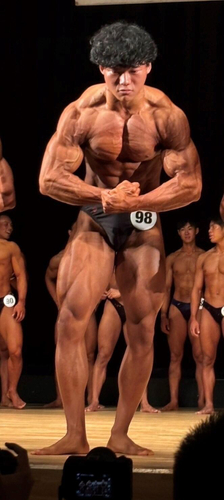 日本体育大や東海大学など強豪が揃う関東勢に対抗するため、この1年間、筋肉をバランスよくつけながら「見劣りしないようひたすら体を大きくするトレーニングに励んだ」と久野選手。全国の精鋭40人がエントリーする中、ステージ上で鍛え抜いた肉体と洗練されたポージングを披露し、「大学生ボディビルダー日本一」に輝きました。