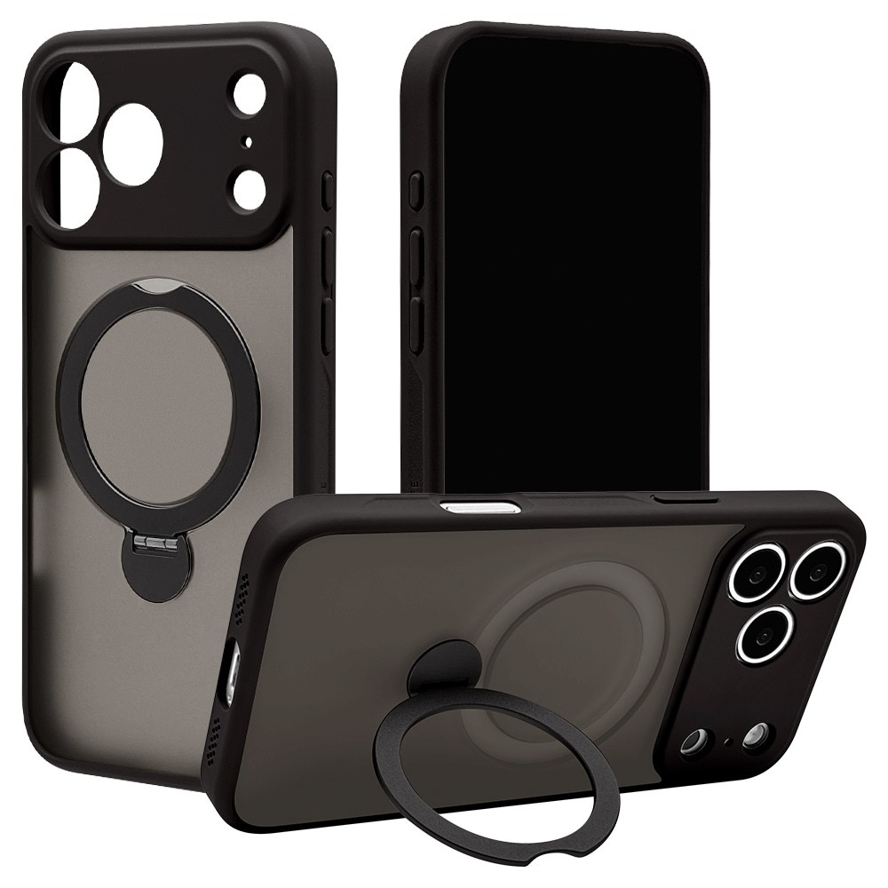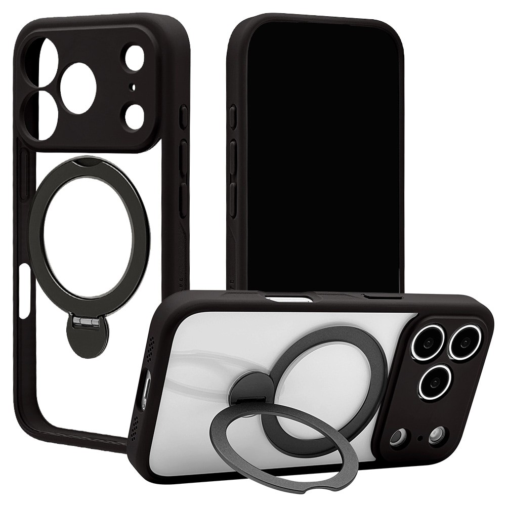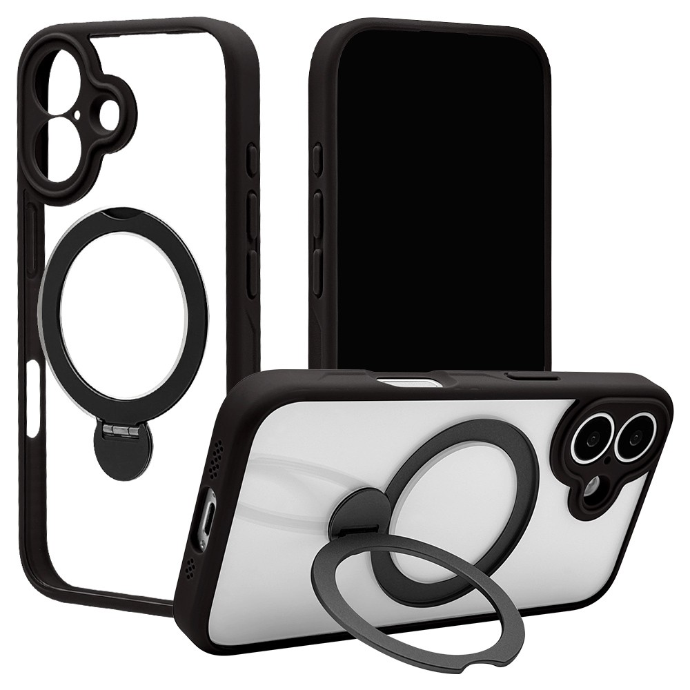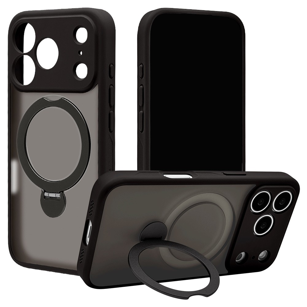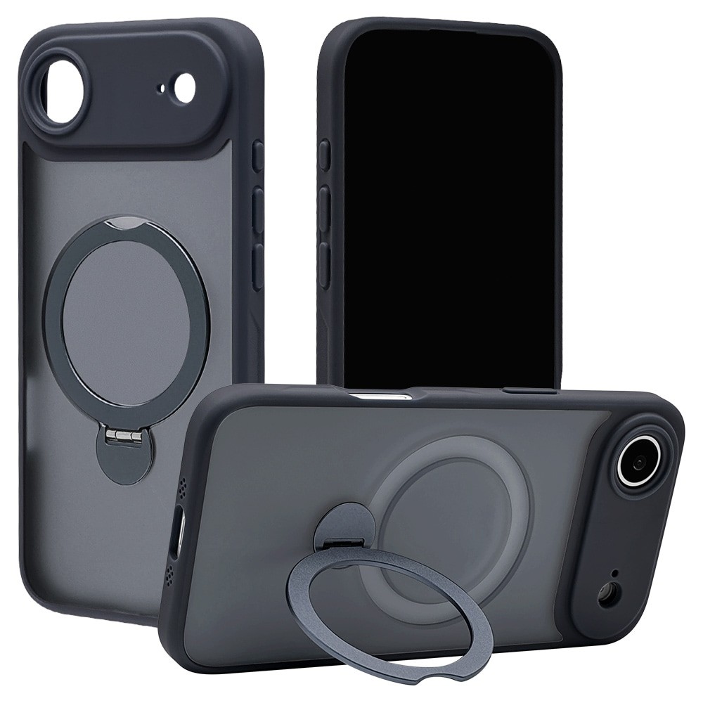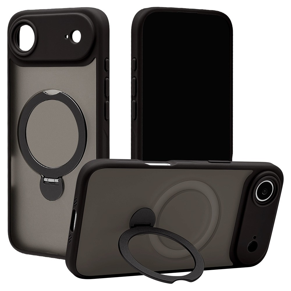 ✅ MagSafe対応リング付き:落下防止・360度回転・縦横スタンド対応、使わない時はスリムに収納