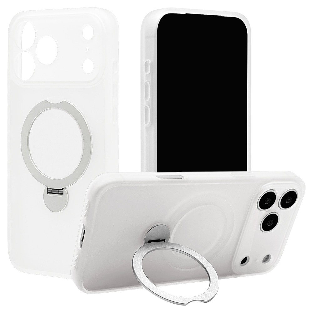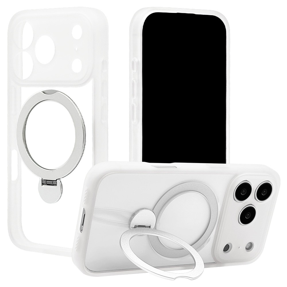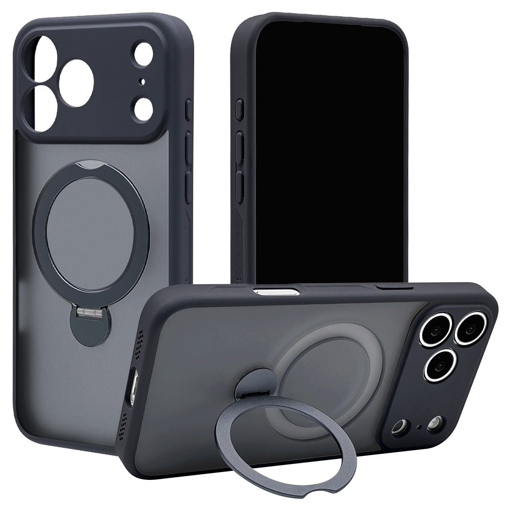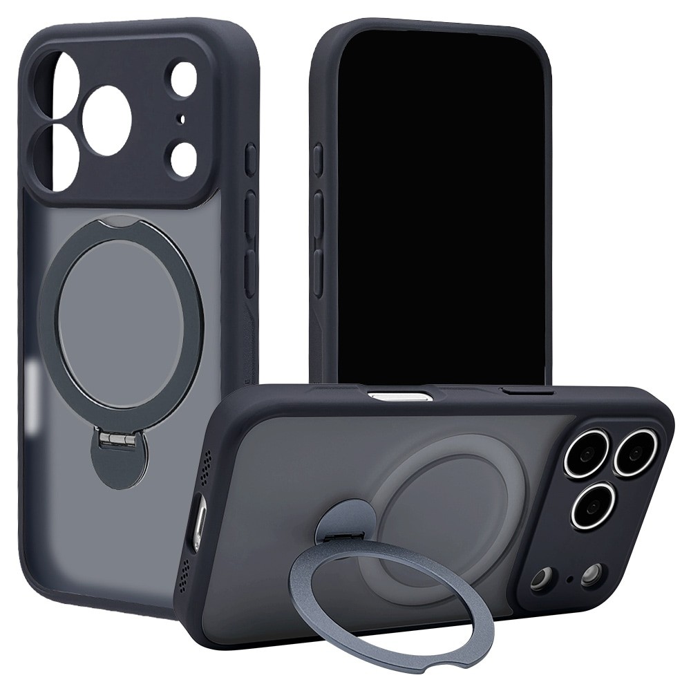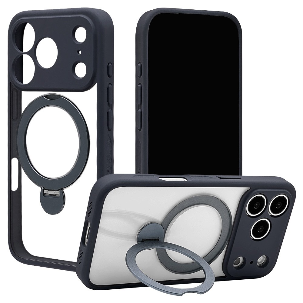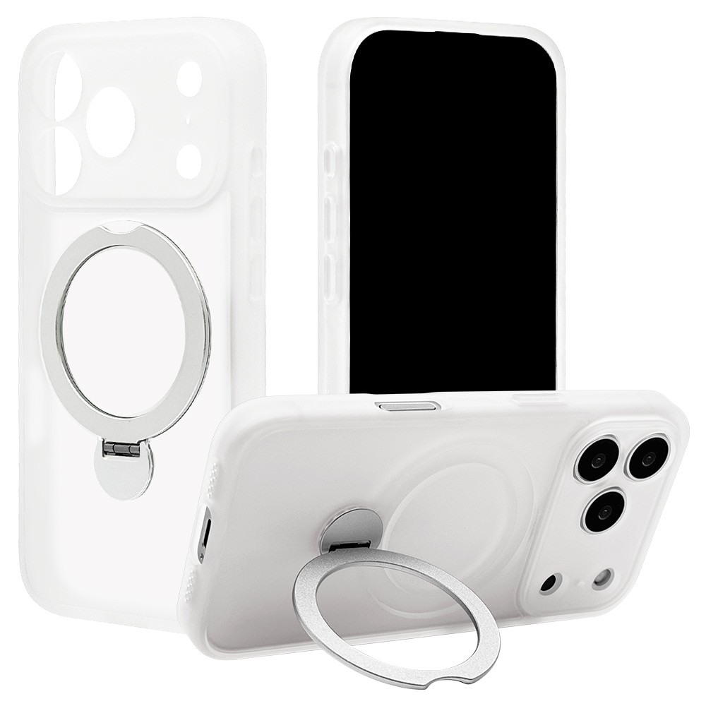 ✅ MagSafe対応リング付き:落下防止・360度回転・縦横スタンド対応、使わない時はスリムに収納