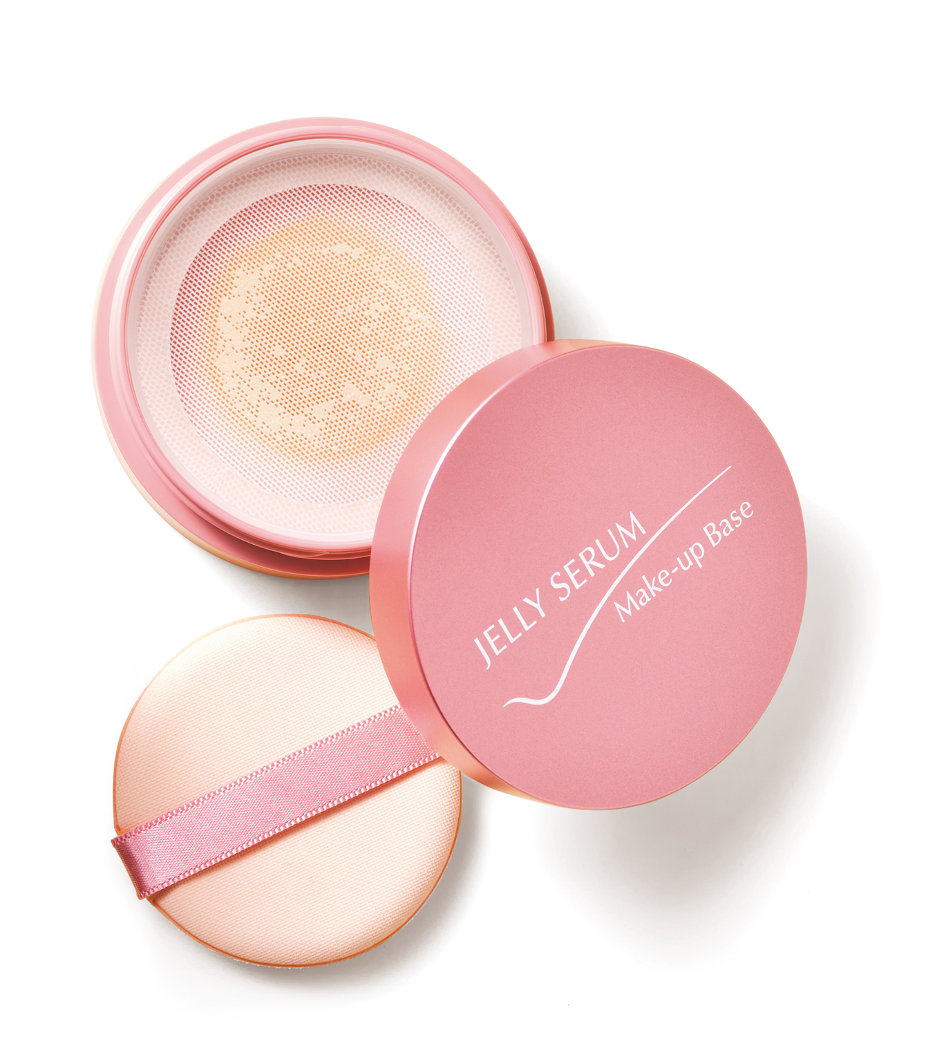 『ジェリーセラムベース』は、ぷるぷるとしたみずみずしいテクスチャーで、毛穴とくすみをカバー。保湿成分スクワラン、ヒアルロン酸Na、酒粕エキス配合でしっとりとした、つやのある仕上がりが持続します。付属のパフで仕上げることで、カンタン手軽に毛穴レス肌※1に整えます。