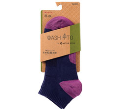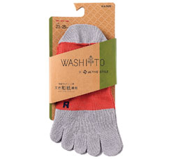 本商品に使用する「和紙」繊維は原料に森林管理された針葉樹の廃材を使用した、環境にやさしいソックスです。極限まで細くした和紙を芯糸のポリエステルに撚糸させる新技術により、一般的な和紙繊維とは違うソフトな新触感を実現しました。和紙の特長である抗菌性、消臭機能、吸水速乾性をいかした商品です。また、ゆったりソフトくちゴム設計、和紙繊維ができるだけ肌にあたる設計、左右で形状を変えた指なり設計で履き心地にもこだわりました。グンゼの人気ブランド「BODY WILD」、「SABRINA」、「ACTIVE STYLE」でWASHIITOとのコラボソックスもラインアップ。