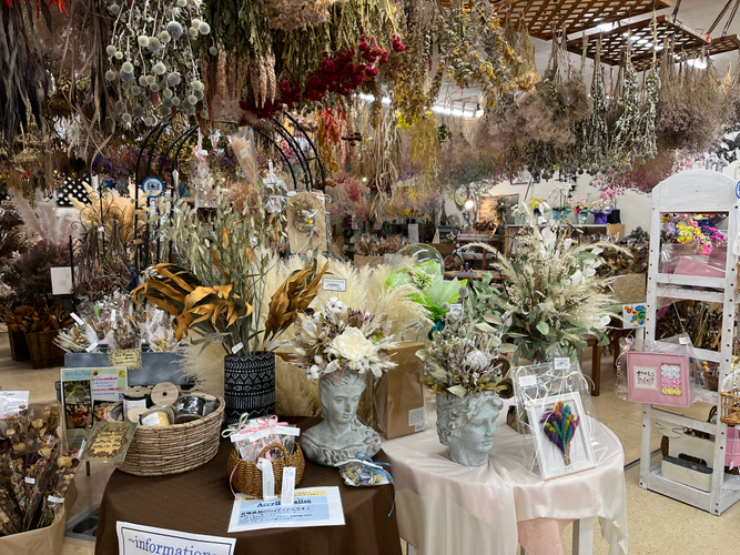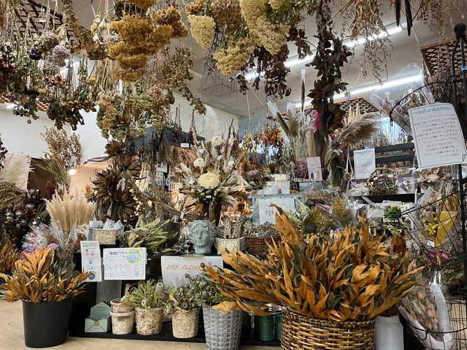 ドライフラワーや生花のアレンジメント教室や、ギフトとしての購入も可能。