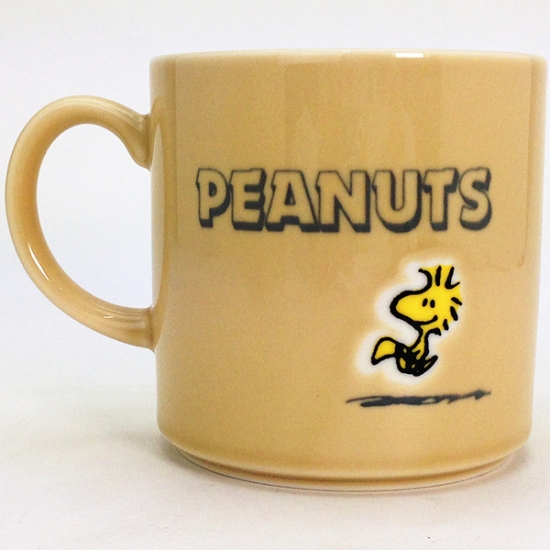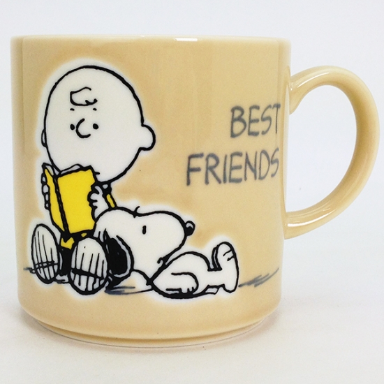 落ち着いたベージュがかわいいこちらのマグカップはスヌーピーとチャーリーブラウンが♪