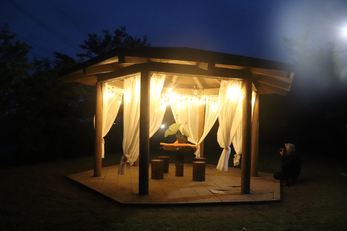 『東屋(あずまや)』 インスタレーション デコレーションとライトアップでオシャレになった夜の東屋は、絶好のフォトスポット