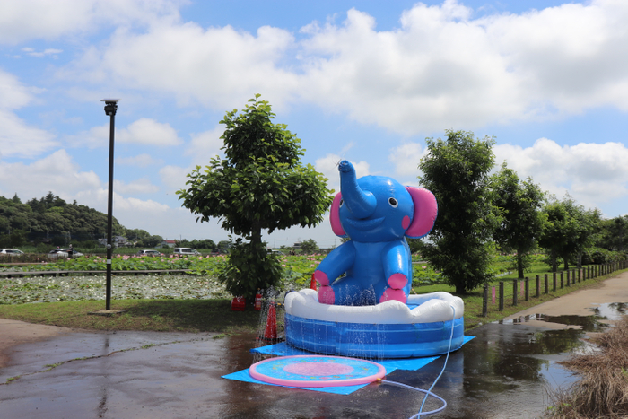 『ぞうさんスプリンクラー』 ロータスフェスのシンボル!?巨大なぞうさんがお出迎え!鼻の先から出るシャワーで水浴びを楽しんで♫